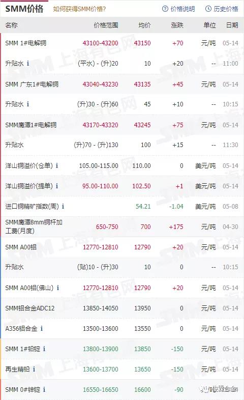 您現(xiàn)在所在位置:首頁?新聞資訊?行業(yè)新聞-俊霖合金解讀:5月14日有色金屬行情行業(yè)新聞