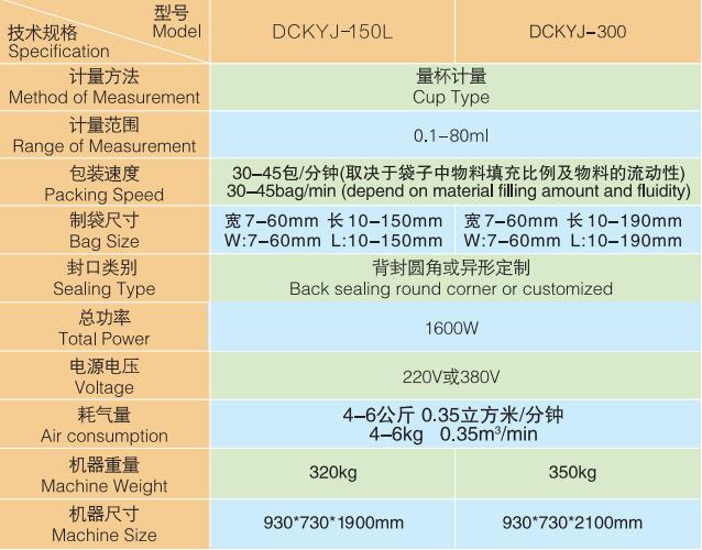 您的位置:首頁 > 產(chǎn)品展示 > 顆粒自動包裝機(jī) > DCKYJ-150L/180L 背封單列圓角顆粒包裝機(jī)技術(shù)參數(shù):